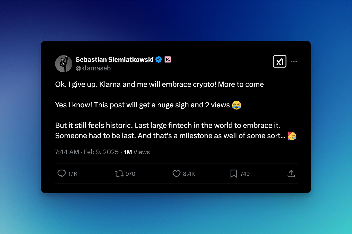 I’m pretty sure buying Solana in four easy payments is off the table (as is a Klarnacoin), but using stablecoins for settlement? That seems well within reach for the Swedish BNPL player. Stay tuned.